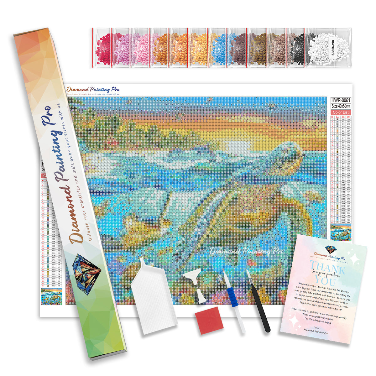 Full Drill Canvas (15.8"x19.7" / 40x50cm): Immerse yourself in the full diamond painting experience with the perfect canvas size for detailed masterpieces. Crafted with care using premium HD quality tarpaulin canvas, it's durable, waterproof, moisture-proof, and wrinkle-free, ensuring a stress-free painting process. Crystal-clear symbols provide easy guidance, while poured-glue canvas adhesive secures your diamonds, maintaining pattern visibility with the transparent cover.